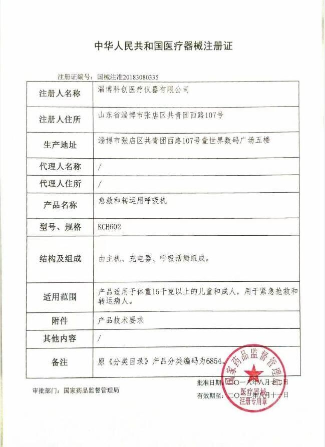 | 英文名稱 | Kechuang emergency transfer ventilator KCH602 |
