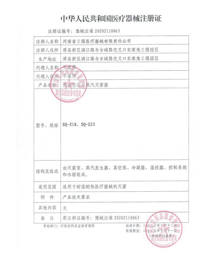 | 英文名稱 | Sanqiang Pre-vacuum Pulsating Steam Sterilizer SQ-Z23 |