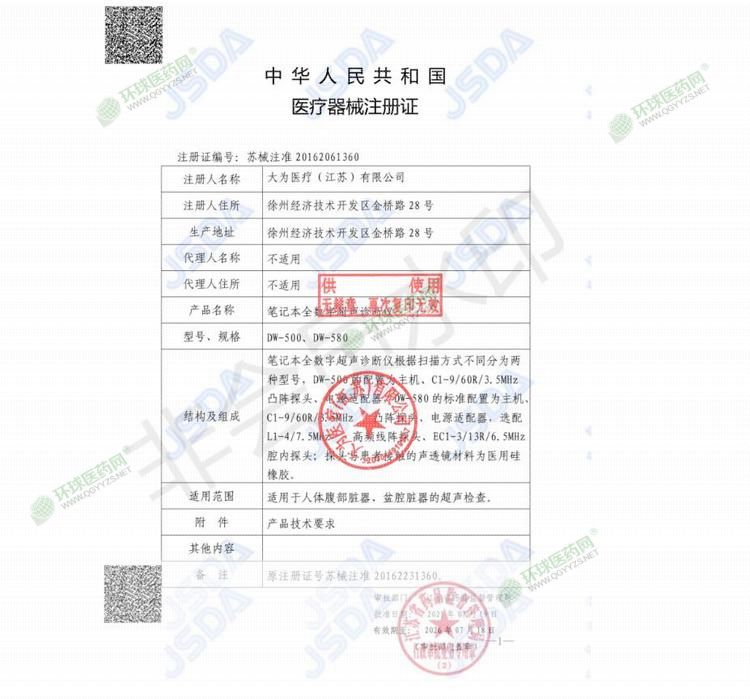 生產(chǎn)企業(yè): 大為醫(yī)療(江蘇)有限公司