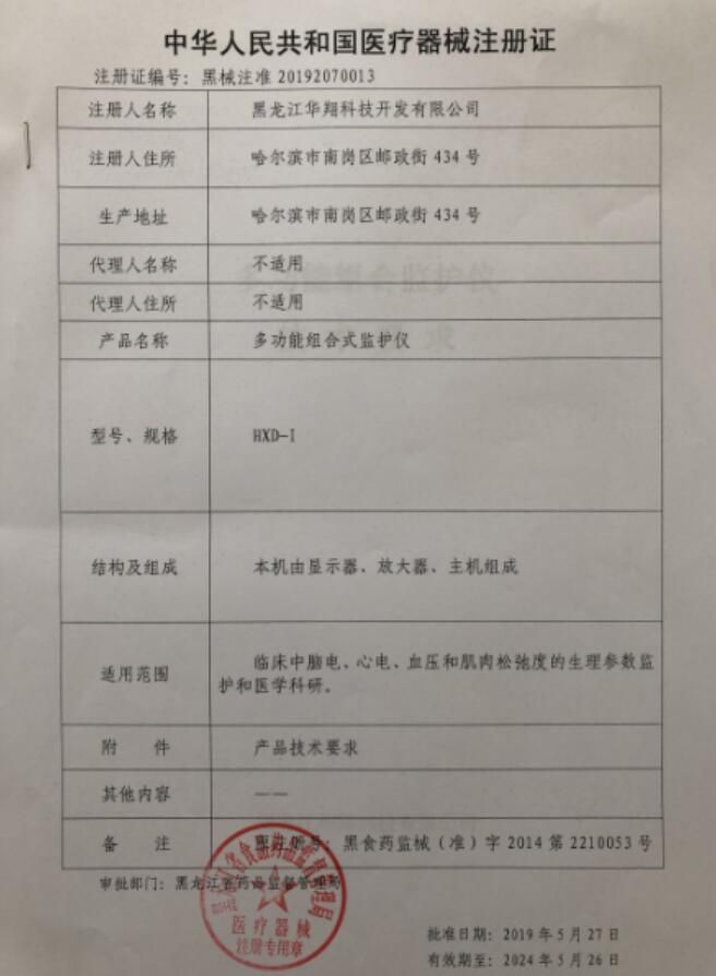 | 英文名稱 | Huaxiang multifunctional combined monitor HXD-I |