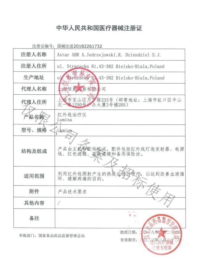 | 英文名稱 | Hengao infrared therapeutic instrument Lumina |