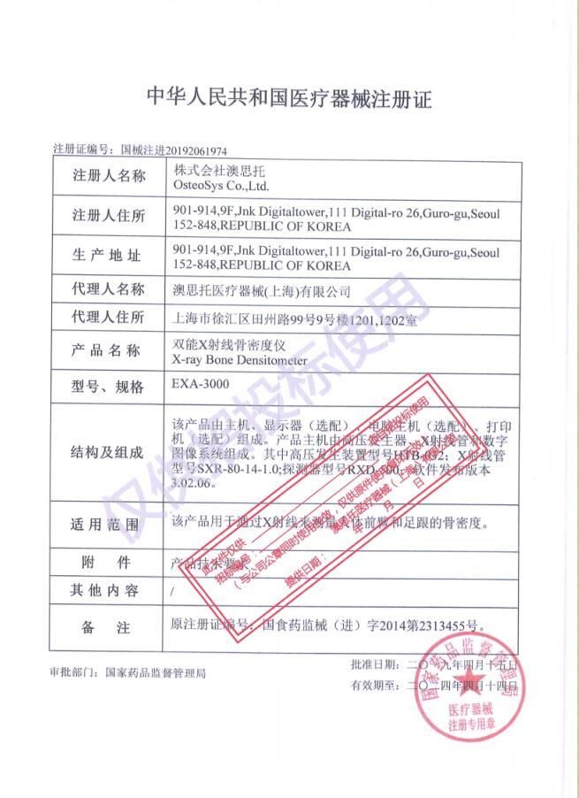 | 英文名稱 | Ostro dual-energy ray bone densitometer detector EXA-3000 |