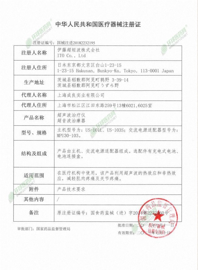 | 英文名稱 | Ito ultrasonic therapeutic instrument US-101L |