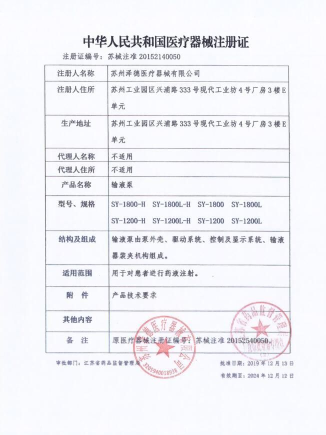 | 英文名稱 | Zede infusion pump SY-1200L |