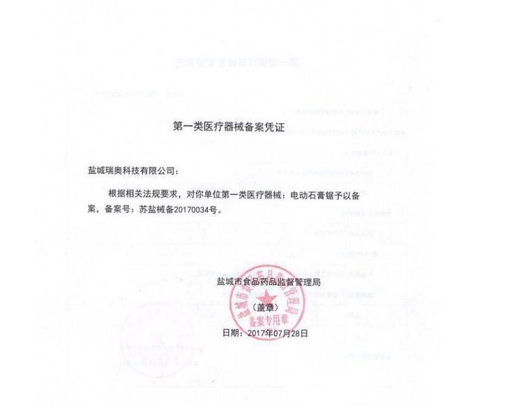| 產(chǎn)品用途 | 用于骨科手術(shù)固定復(fù)位后,切割拆除石膏繃帶。 |