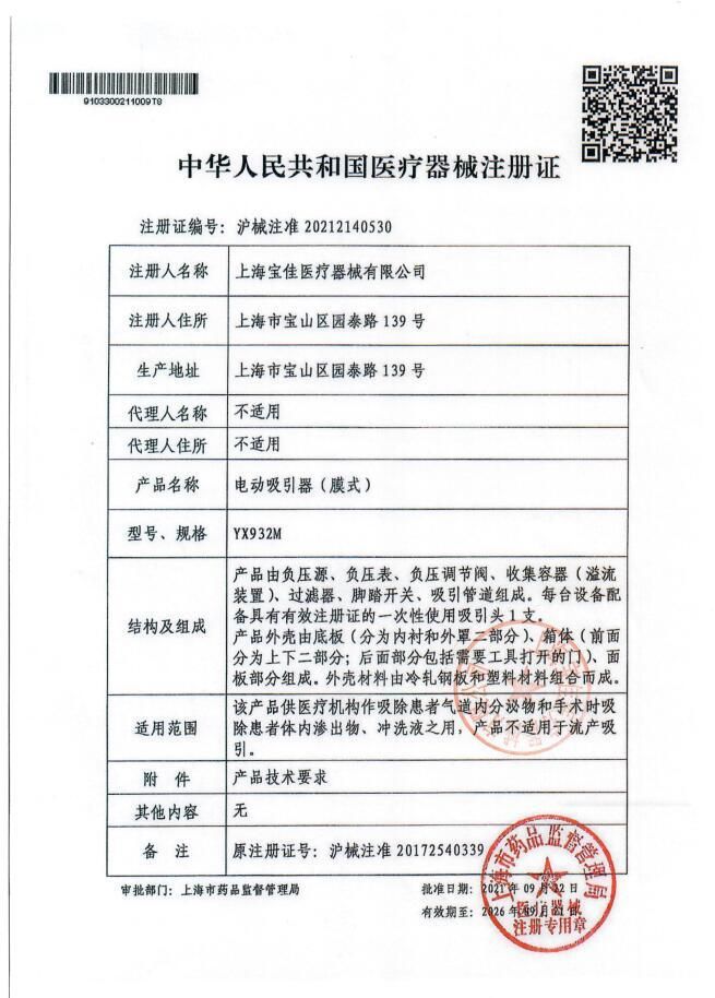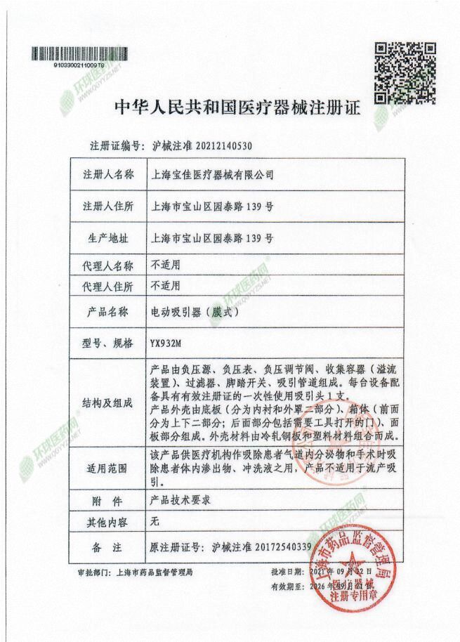 | 英文名稱 | Baojia electric suction device (membrane type) YX932M |