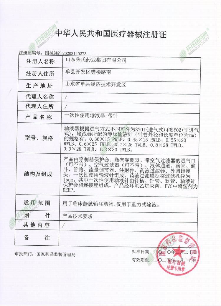 | 產(chǎn)品用途 | 用于臨床靜脈輸注藥物,僅用于重力式輸液。 |