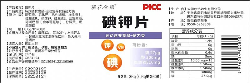 | 主要成分 | 氯化鉀碘酸鉀維生素B葡萄糖等 |