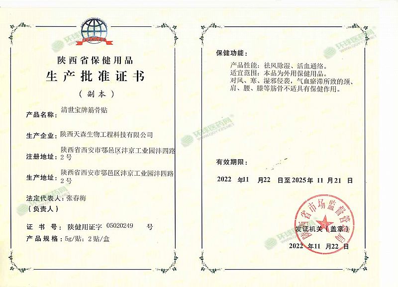 | 產(chǎn)品用途 | 對頸肩腰膝筋骨不適有保健作用 |