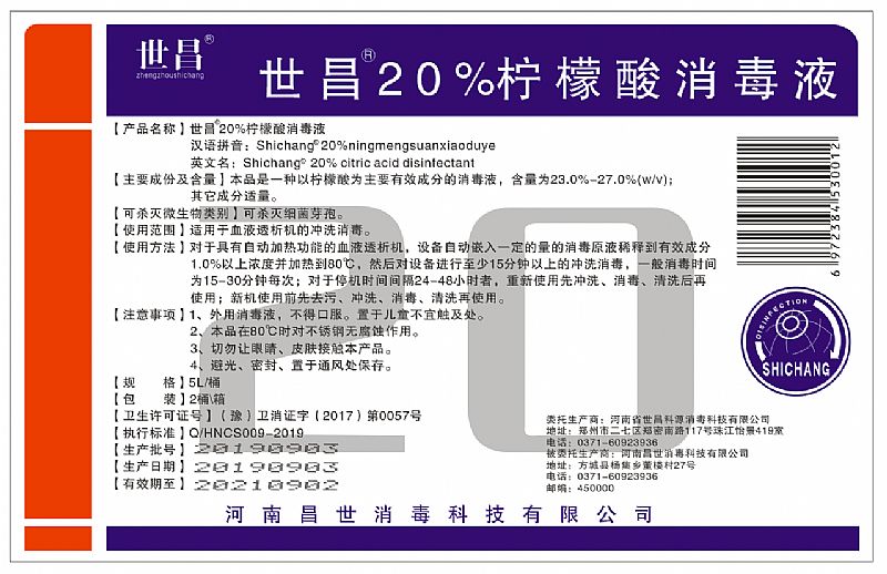 | 產(chǎn)品名稱 | 世昌®;;20%檸檬酸消毒液 |