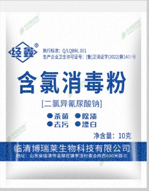 | 補充說明 | 【注意事項】 1.外用消毒劑,不得口服。置于兒童不易觸及處。 2.開啟使用后剩余消毒劑包裝應封口,避免受潮,宜現(xiàn)配現(xiàn)用。 3.本品不得用于金屬物品消毒,對織物有漂白和腐蝕作用,慎用。 4.密封,置于陰涼、干燥處保存。 有 效 期24個月 【包裝規(guī)格】10克/袋 20克/袋 250克/袋 500克/袋 【生產企業(yè)衛(wèi)生許可證號】(魯)衛(wèi)消證字(2022)第1409號 【生產日期或生產批號】生產日期見包裝 【執(zhí)行標準】Q/LQBRL001 【企業(yè)名稱】臨清博瑞萊生物科技有限公司 【生產地址】山東省聊城市臨清市金郝莊鎮(zhèn)李洼村委會向西600米路北 |