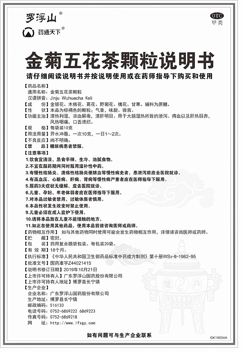| 通用名稱 | 金菊五花茶顆粒 |