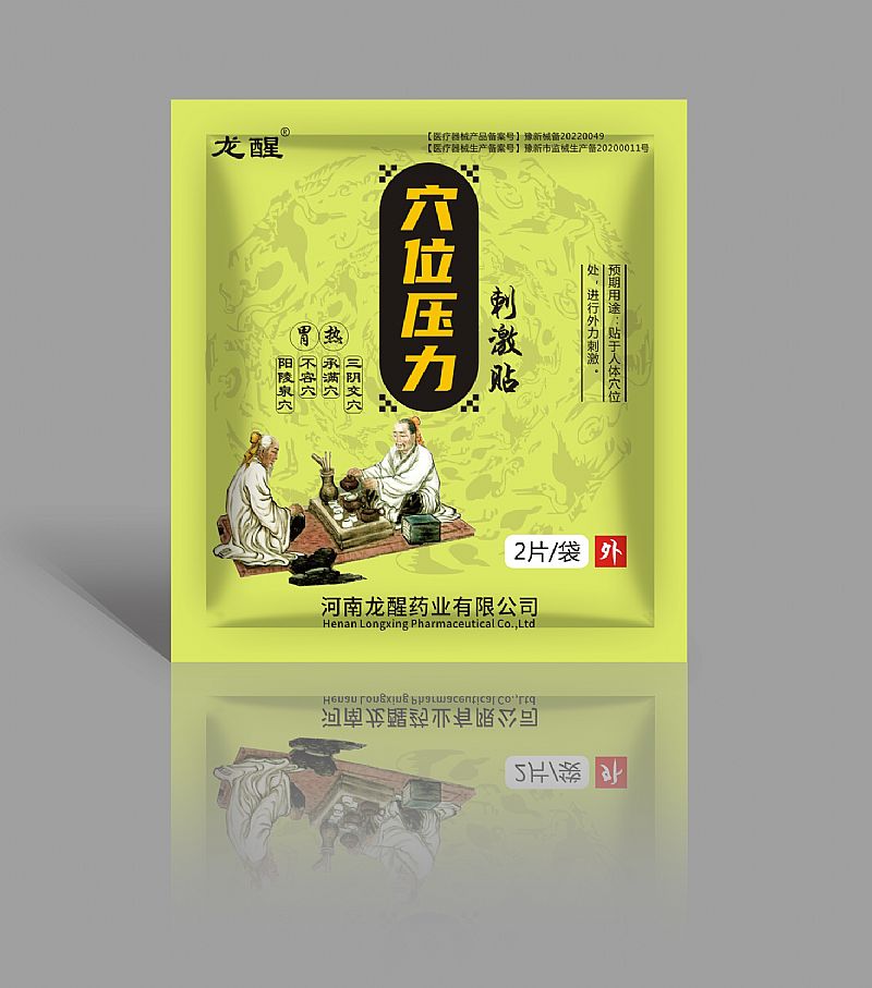 | 補充說明 | 【注意事項】1.一次性使用,用后銷毀;2.叮囑患者定時按壓,按壓不能過度用力,以不損傷皮膚為宜;3.無粘性,包裝破損或過有效期禁止使用;4.夏季多汗,宜勤換;5.敷貼后如有過敏等不適,應(yīng)停止敷貼。 【禁忌癥】孕婦,皮膚潰爛處禁用。 【慎用】糖尿病,高熱患者。 【存儲條件】本產(chǎn)品應(yīng)貯存在相對濕度不超過80%,無腐蝕性氣體,陰涼,干燥,通風(fēng)良好,清潔的環(huán)境內(nèi)。 |