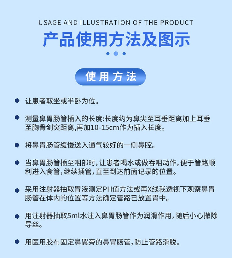 | 產(chǎn)品用途 | 適用于進(jìn)行空腹?fàn)I養(yǎng)和胃內(nèi)輸送、灌注和減壓用 |