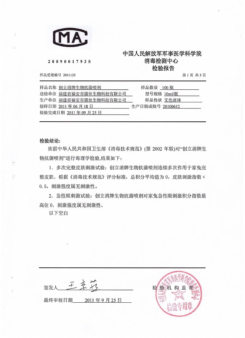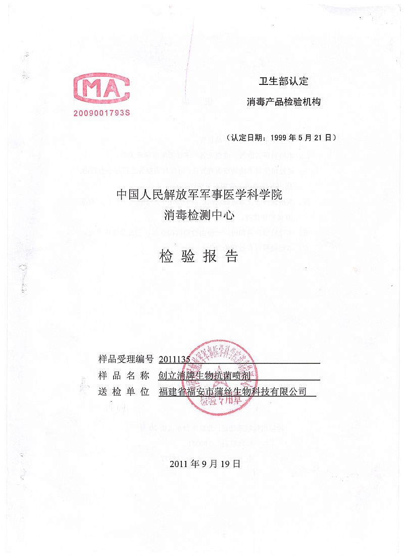 | 產(chǎn)品名稱 | 生物抗菌噴劑(創(chuàng)立消) |
