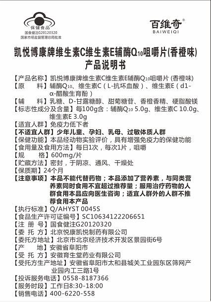 | 產(chǎn)品名稱 | 百維奇輔酶Q10咀嚼片(香橙味) |