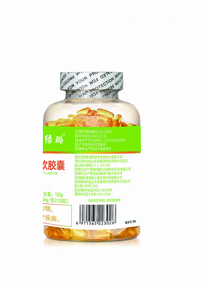 | 補充說明 | 【原料】魚油 【輔料】明膠、純化水、甘油、維生素E(D-α-生育酚) 【標志性成分及含量】每100g含:二十二碳六烯酸10.1g、二十碳五烯酸7.8g 【適宜人群】免疫力低下者 【不適宜人群】少年兒童、孕婦、乳母 【保健功能】本品經(jīng)動物實驗評價,具有增強免疫力的保健功能 【食用量及食用方法】每日3次,每次1粒,口服 【規(guī)格】1000mg/粒 【貯藏方法】密閉置于常溫、干燥防潮處 【保質(zhì)期】24個月 |