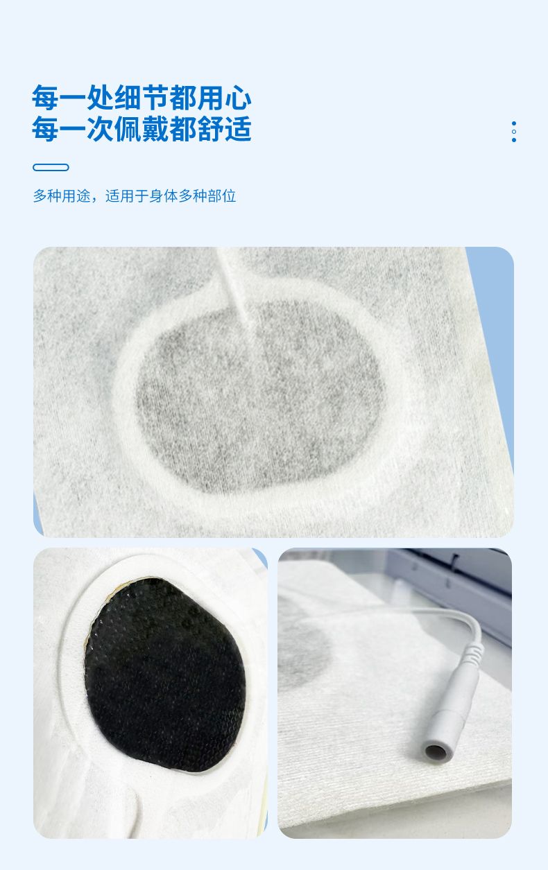 | 使用方法 | 使用方法:撕開包裝袋取出產(chǎn)品,撕去防粘紙一面貼于需要的部位,另一面貼在儀器電極板上。一次性理療電極片(溫?zé)嵬富姌O片)結(jié)構(gòu)簡(jiǎn)單,操作方便。 |