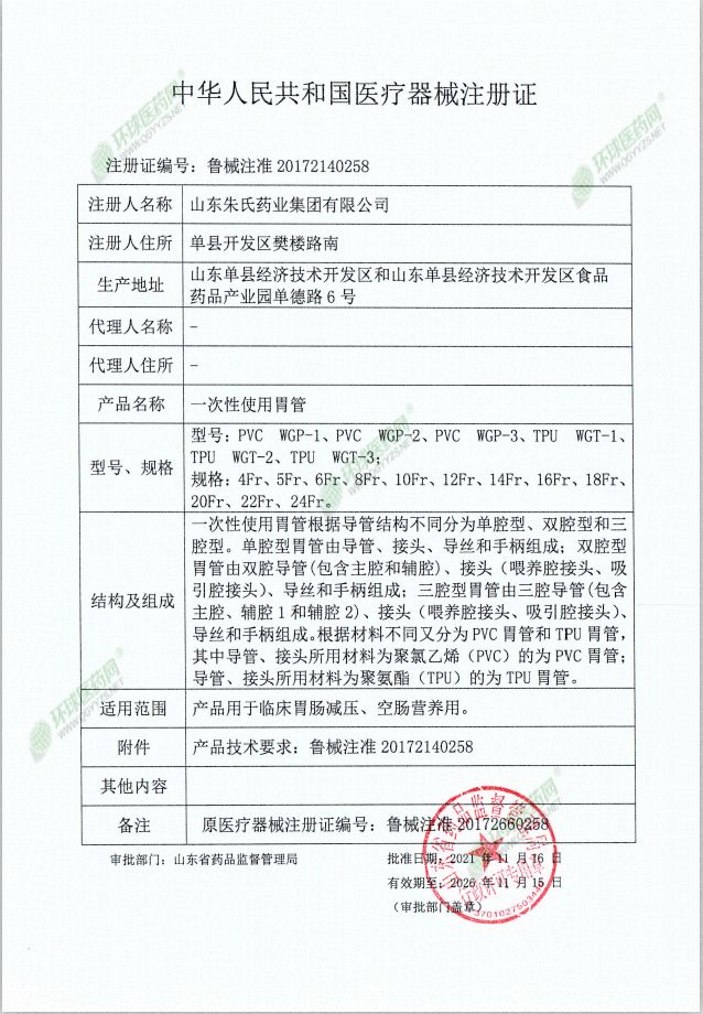 | 補(bǔ)充說明 | 適用人群:適用于ICU重癥病人、大手術(shù)前后、需要胃腸減壓者、不能進(jìn)食患者、昏迷、植物生存狀態(tài)者、長(zhǎng)期臥床不能自行進(jìn)食者、口腔大手術(shù)者。 一次性使用胃管可根據(jù)病情注入流質(zhì)或半流質(zhì)食物為患者提供足夠的營(yíng)養(yǎng),對(duì)需要胃腸減壓者,接口可接負(fù)壓吸引器具,故俗稱經(jīng)鼻喂養(yǎng)管、胃腸減壓管。 產(chǎn)品規(guī)格:?jiǎn)吻恍蚖G-1、雙腔型WG-2、三腔型WG-3 結(jié)構(gòu)組成:?jiǎn)吻恍臀腹苡蓪?dǎo)管、接頭、導(dǎo)絲和手柄組成;雙腔型胃管由雙腔導(dǎo)管(包含主腔和輔腔)、接頭、導(dǎo)絲和手柄組成;三腔型胃管由三腔導(dǎo)管(包含主腔、輔腔1和輔腔2)、接頭、導(dǎo)絲和手柄組成。胃管應(yīng)具有良好的密合性,內(nèi)腔通入100kPa氣壓持續(xù)15s,連接部不應(yīng)產(chǎn)生泄漏現(xiàn)象;胃管接頭與導(dǎo)管的連接處、導(dǎo)管與末端連接處應(yīng)能承受15N的線性拉伸分離力未斷裂或分離;密封**進(jìn)出口,胃管接頭與連接件的連接件處應(yīng)在50kPa的水壓下2min無泄漏;胃管應(yīng)無菌,產(chǎn)品采用環(huán)氧乙烷滅菌,滅菌后環(huán)氧乙烷殘留量應(yīng)不大于10μg/g。 使用說明: 1、胃管由受過專業(yè)培川的醫(yī)護(hù)人員操作使用: 2、使用前先檢查包裝是否完好,從撕開口打開包裝,將產(chǎn)品取出。 3、對(duì)產(chǎn)品頭端進(jìn)行潤(rùn)滑處理,病人在適合的體位下,將導(dǎo)管從口腔緩插入,至咽喉部時(shí)矚咐病人做吞咽動(dòng)作,將導(dǎo)管插入到需要長(zhǎng)度。 4、使用抽吸胃液、X光透視等手段確認(rèn)置管到位后,如是帶導(dǎo)絲的產(chǎn)品,需將導(dǎo)絲取出。 注意事項(xiàng):1、本產(chǎn)品**醫(yī)療機(jī)構(gòu)使用,未經(jīng)過專培訓(xùn)的人員禁止操作使用。2、本產(chǎn)品為無菌一次性使用產(chǎn)品,用后集中銷毀。3、包裝一旦破損、漏氣,不得使用。從包裝內(nèi)取出,注意防止污染導(dǎo)管。4、產(chǎn)品應(yīng)在有效期內(nèi)使用。 禁忌癥:嚴(yán)重的食管靜脈曲張、腐蝕性胃炎、鼻腔阻寒、食管或噴門狹窄或梗阻、嚴(yán)重呼吸困難及其他不適合插胃管的疾病。 使用期限:經(jīng)環(huán)氧乙烷滅菌后,有效期兩年(由加速試驗(yàn)獲得)。 儲(chǔ)存條件:應(yīng)貯存在相對(duì)濕度不超過80%,無腐蝕性氣體和通風(fēng)良好清潔的室內(nèi)。 |