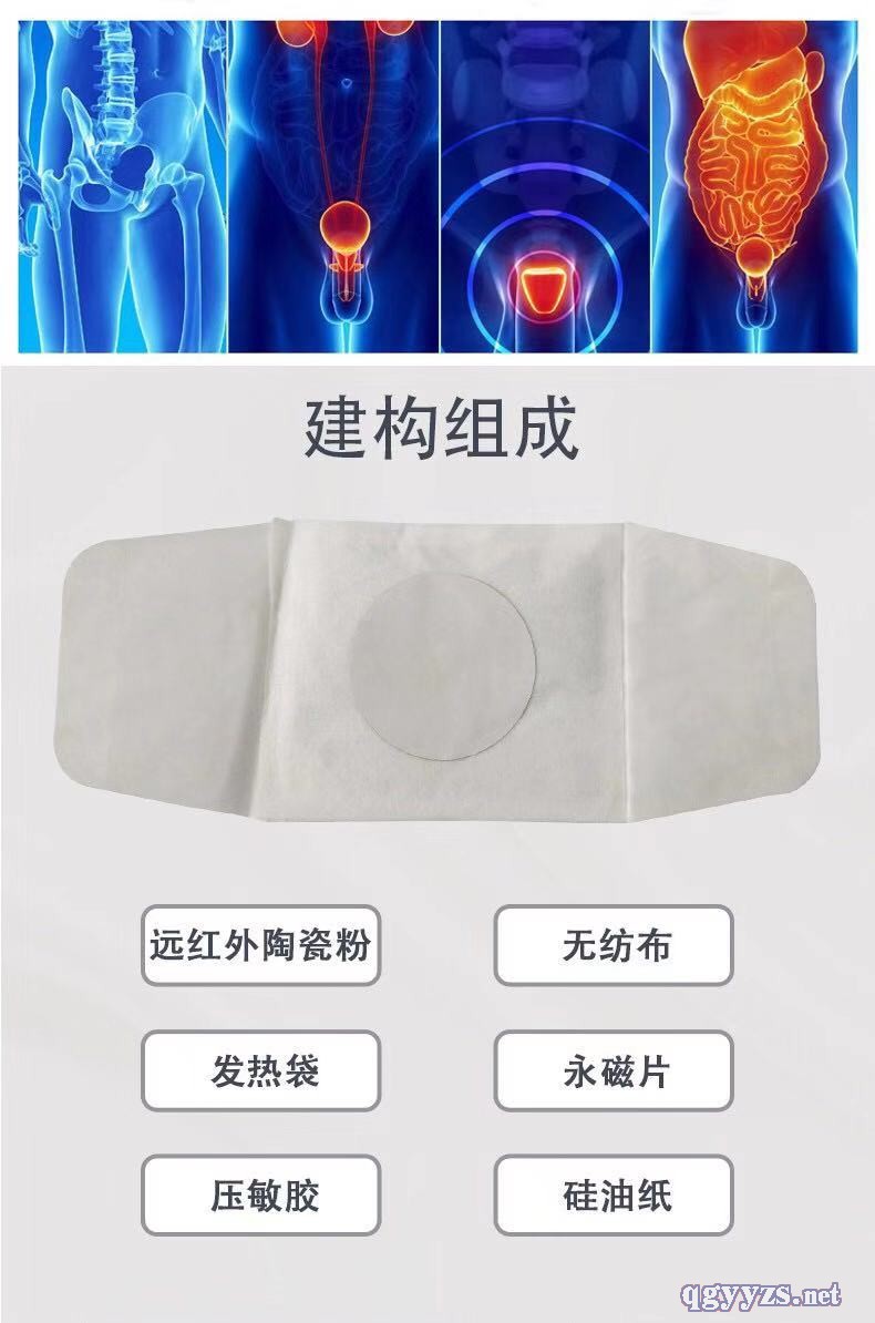 | 作用機理 | 用于對慢性前列腺治療的輔助性治療,清潔患處,確認包裝無破損,打開包裝,取出磁熱療貼,將貼劑的隔離膜撕去,貼去患處 |