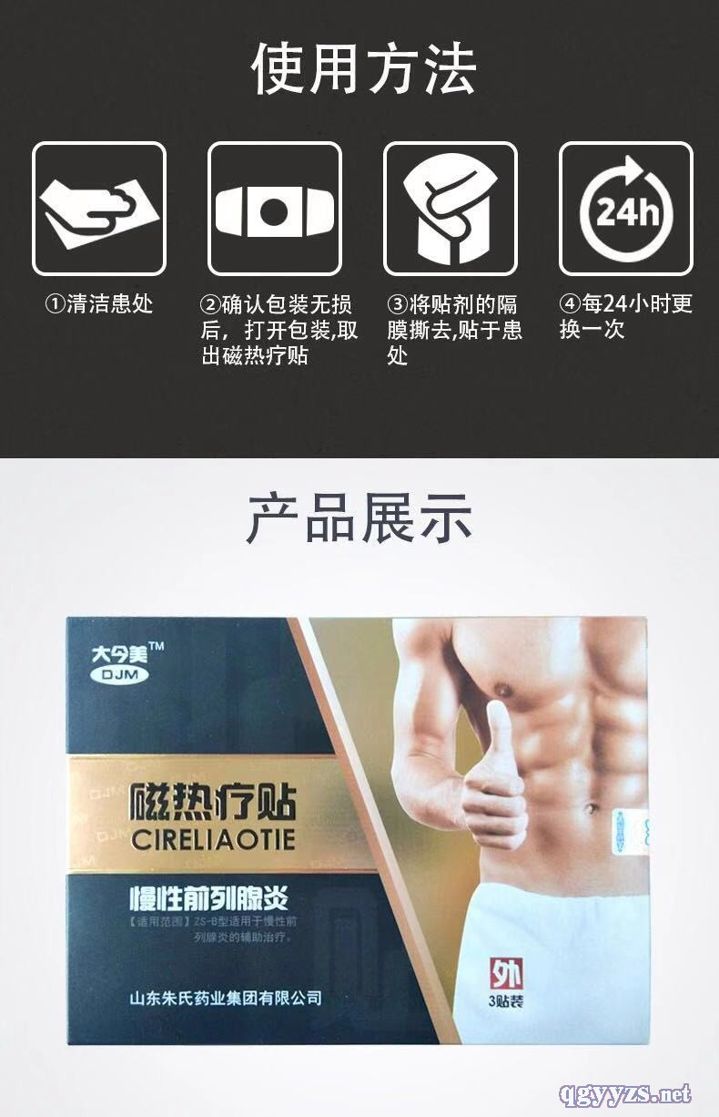 | 產(chǎn)品用途 | 用于對慢性前列腺治療的輔助性治療,清潔患處,確認包裝無破損,打開包裝,取出磁熱療貼,將貼劑的隔離膜撕去,貼去患處,每24小時更換一次。 |