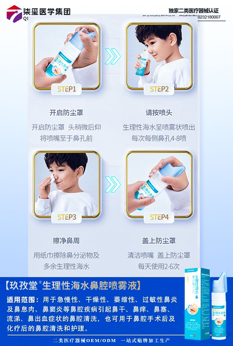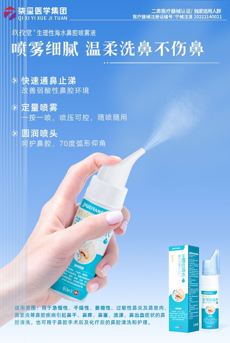 | 補(bǔ)充說明 | 1.用于急慢性、干燥性、萎縮性、過敏性鼻炎及鼻息肉、鼻竇炎等鼻腔疾病引起鼻干、鼻癢、鼻塞、流涕、鼻出血癥狀的鼻腔清洗 2.鼻腔手術(shù)后及化療后的鼻腔清洗和護(hù)理 3.換季****,噴霧輕容細(xì)膩不嗆鼻,小孩老人通用 4.雙層化鋁罐/密封性好,液體不受外界污染,方便攜帶,隨時滋潤清潔鼻腔 5.二類醫(yī)療器械,醫(yī)用品質(zhì)呵護(hù)鼻腔 |