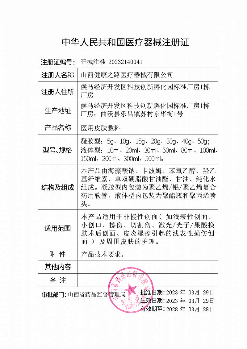 生產(chǎn)企業(yè): 山西健康之路醫(yī)療器械有限公司