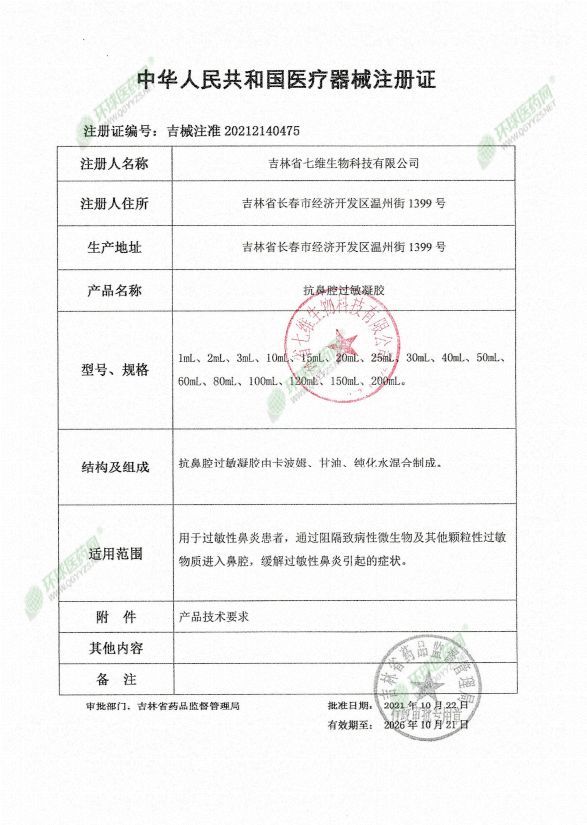 | 產(chǎn)品用途 | 用于過敏性鼻炎患者,通過阻隔致病性微生物及其他顆粒性過敏物質(zhì)進入鼻腔,緩解過敏性鼻炎引起的癥狀 |