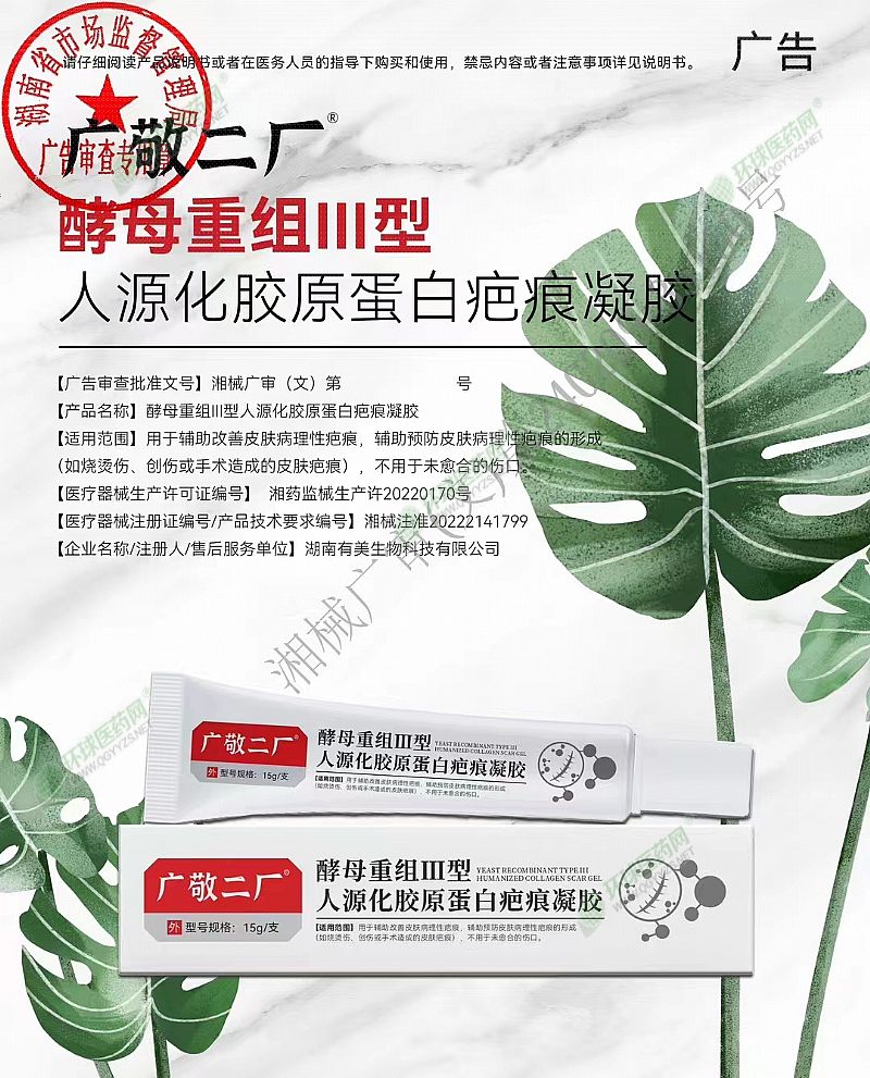 廣敬二廠酵母酵母重組III型人源化膠原蛋白疤痕凝膠