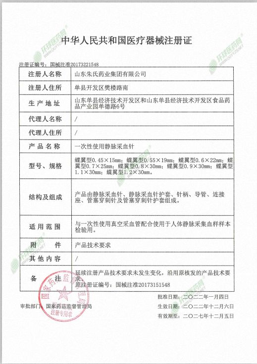 | 產品用途 | 與一次性使用真空采血管配合使用于人體靜脈采集血樣樣本檢驗用。 |