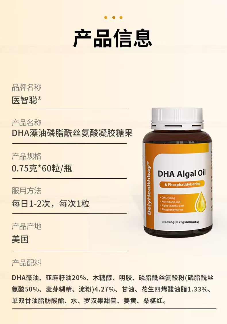| 產(chǎn)品名稱 | 醫(yī)智聰DHA藻油磷脂酰絲氨酸凝膠糖果 |
