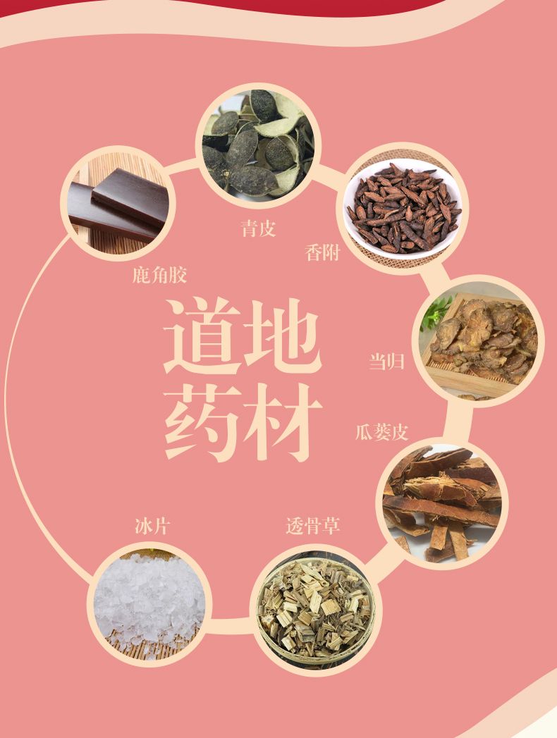 | 主要成分 | 本品是以鹿角膠、青皮、香附、當(dāng)歸、瓜蔞皮、透骨草.冰片為主要原料,經(jīng)特定工藝加工而成。 |