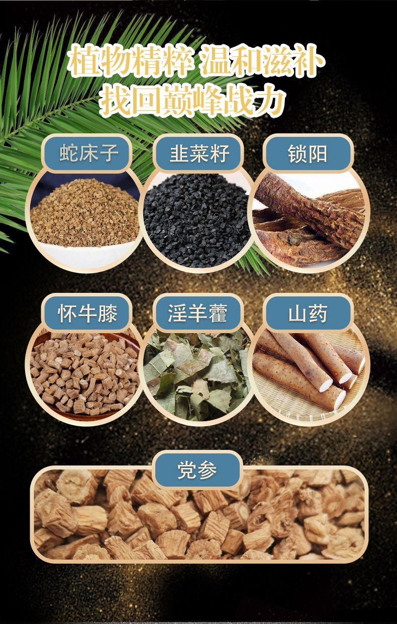 | 主要成分 | 本品是以蛇床子、韭菜子、鎖陽(yáng)、懷牛膝、黨參、山藥、淫羊藿為主要原料,經(jīng)特定工藝加工而成。 |
