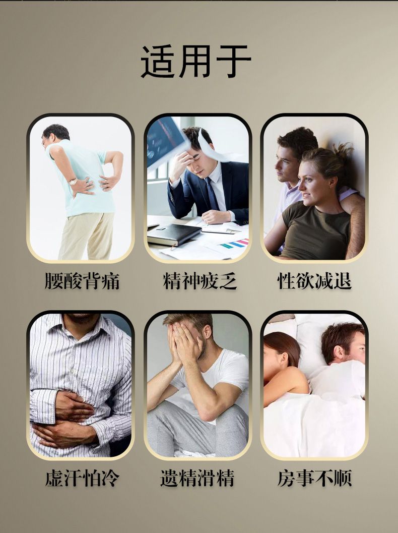 | 產(chǎn)品用途 | 適合以下人群:1、性生活質(zhì)量低。2、長(zhǎng)期性功能障礙、陽(yáng)萎、早泄、對(duì)速效壯陽(yáng)藥物產(chǎn)生依賴的。3、從小體弱多病,精神萎靡,房事頻次低的男人。4、40歲以后及出現(xiàn)衰老跡象,乏力疲倦、力不從心的。5、房事手淫過度,腎精流失過多,腎虛癥狀雙虧的男人。6、久病及腎,**慢性病長(zhǎng)期伴隨,腎虛癥狀增多的男人。7、**原因造成的性冷淡問題的人。 |
