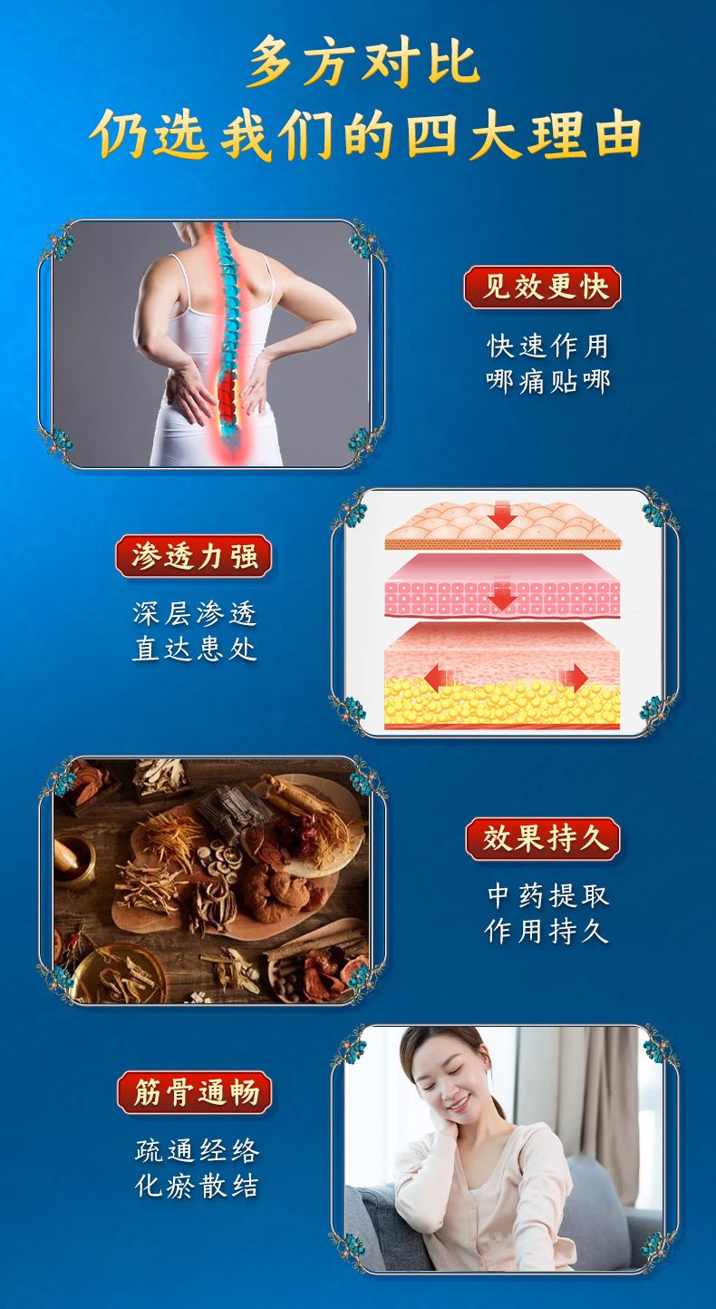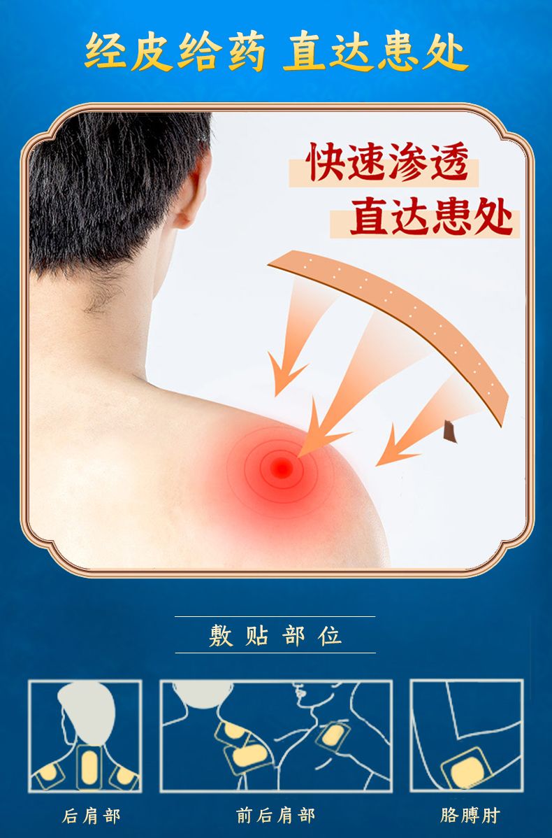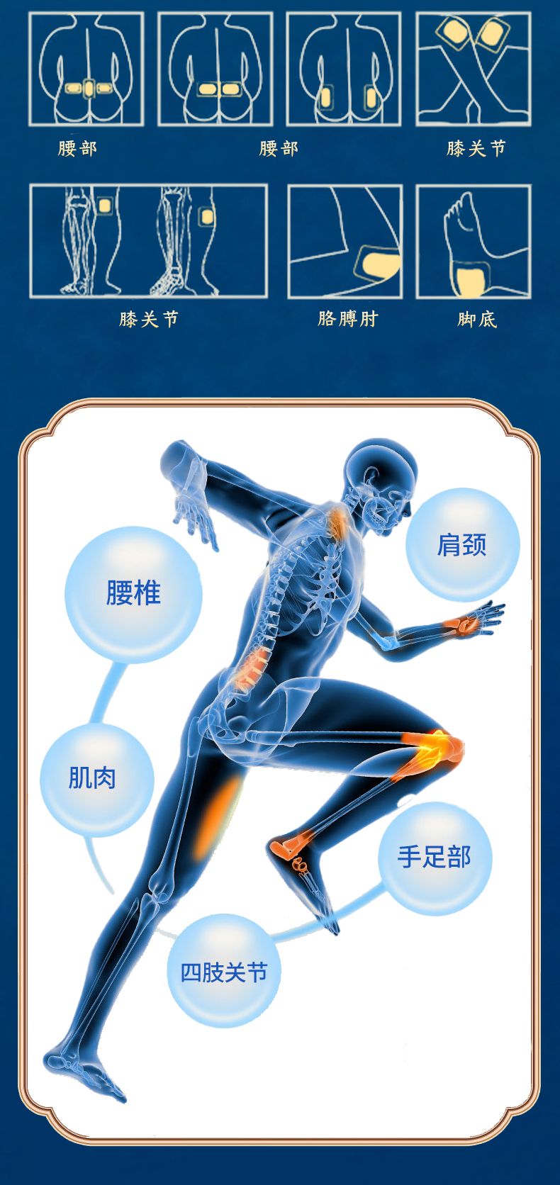 | 產(chǎn)品用途 | 用于風寒濕侵襲、勞損等引起的頸、肩、腰、腿疼痛、肌肉關(guān)節(jié)疼痛,跌打損傷等不適的亞健康人群,促進健康。 |
