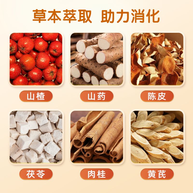 | 主要成分 | 本品是以黨參、茯苓、白術(shù)、橘皮、砂仁、肉桂、肉豆蔻、山楂、雞內(nèi)金、萊菔子、薄荷為主要原料,經(jīng)特定工藝加工而成。 |