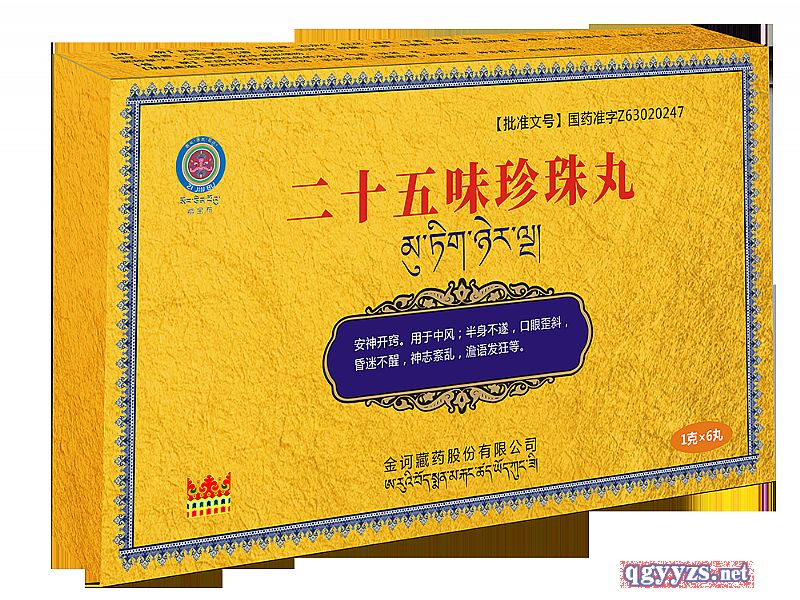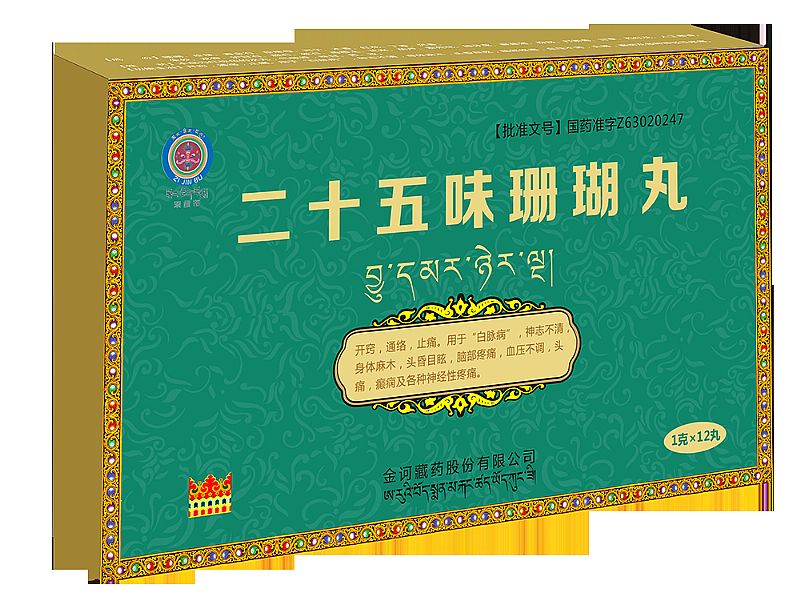 | 主要成分 | 珊瑚、珍珠、青金石、珍珠母、訶子、木香、紅花、丁香、沉香、朱砂、龍骨、爐甘石、腦石、磁石、禹糧土、芝麻、葫蘆、紫菀花、獐牙菜、藏菖蒲、榜那、打箭菊、甘草、西紅花、人工麝香。 |