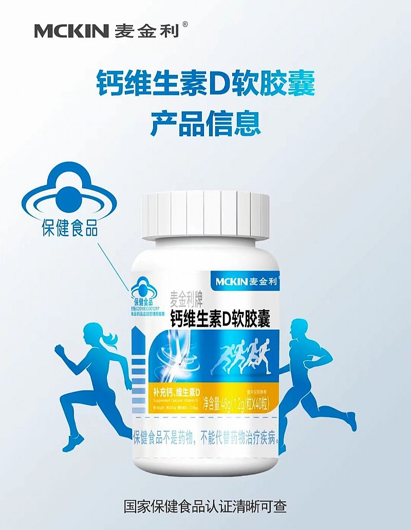 | 補充說明 | 原料:碳酸鈣,維生素D3 輔料:大豆油,明膠,純化水,甘油,蜂蠟二氧化鈦,混合生育酚濃縮物功效成分及含量:每粒含: 鈣 305.0mg維生素D33.05ug保健功能:補充鈣、維生素D 適宜人群:需要補充鈣、維生素D的4-17歲人群及成人、孕婦、乳母不適宜人群:1歲以下人群 食用量及食用方法:4-17歲人群:每日1次,每次1粒;成人、孕婦、乳母:每日1次,每次2粒。食用方法:口服 規(guī)格:1.2g/粒 生產(chǎn)批號、生產(chǎn)日期及保質(zhì)期至:見瓶底 保質(zhì)期:24個月 貯藏方法:密封,置陰涼干燥處 外的人群不推薦食用本產(chǎn)品。不宜超過推 注意事項:本品不能代替藥物。適宜人群 |