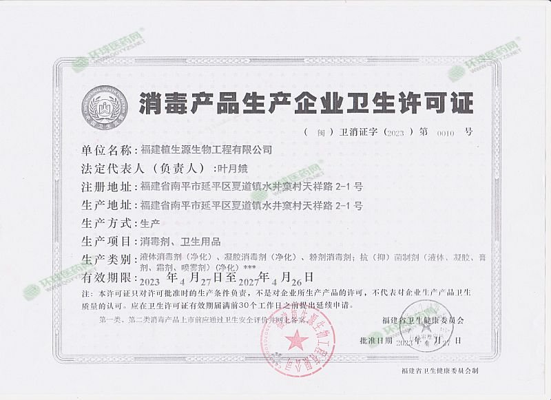 批準文號: 閩衛(wèi)消證字2023第0010號