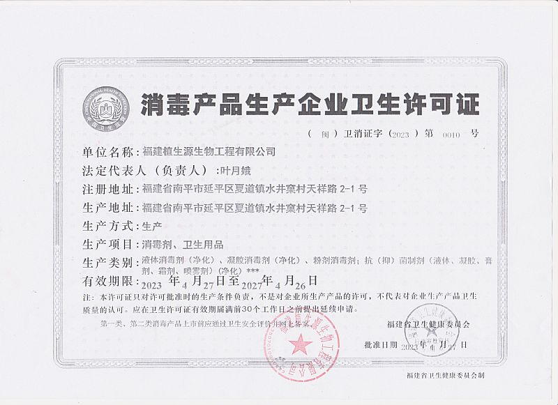 批準(zhǔn)文號: 閩衛(wèi)消證字2023第0010號