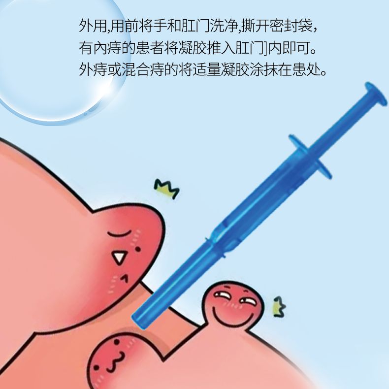 | 使用方法 | 外用。使用前將手和肛門洗凈,打開保護帽,將凝膠緩緩擠出。外痔將適量凝膠涂敷在患處,內痔將給凝器插入肛門1~2cm處把凝膠擠入肛門內即可。每日--次,每次一支,睡前或便后使用,7天為1個療程,重癥患者早晚各一次,或遵醫(yī)囑。 |