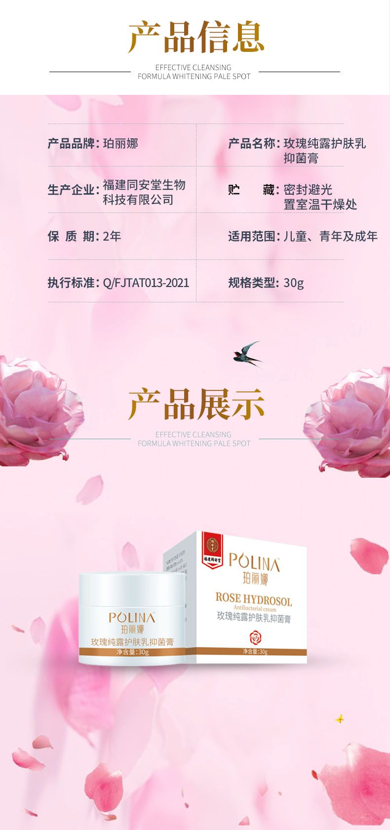 產(chǎn)品名稱: 珀麗娜™;玫瑰純露護(hù)膚乳抑菌膏