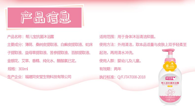 | 產(chǎn)品名稱 | 幫兒寶抗菌沐浴露 |