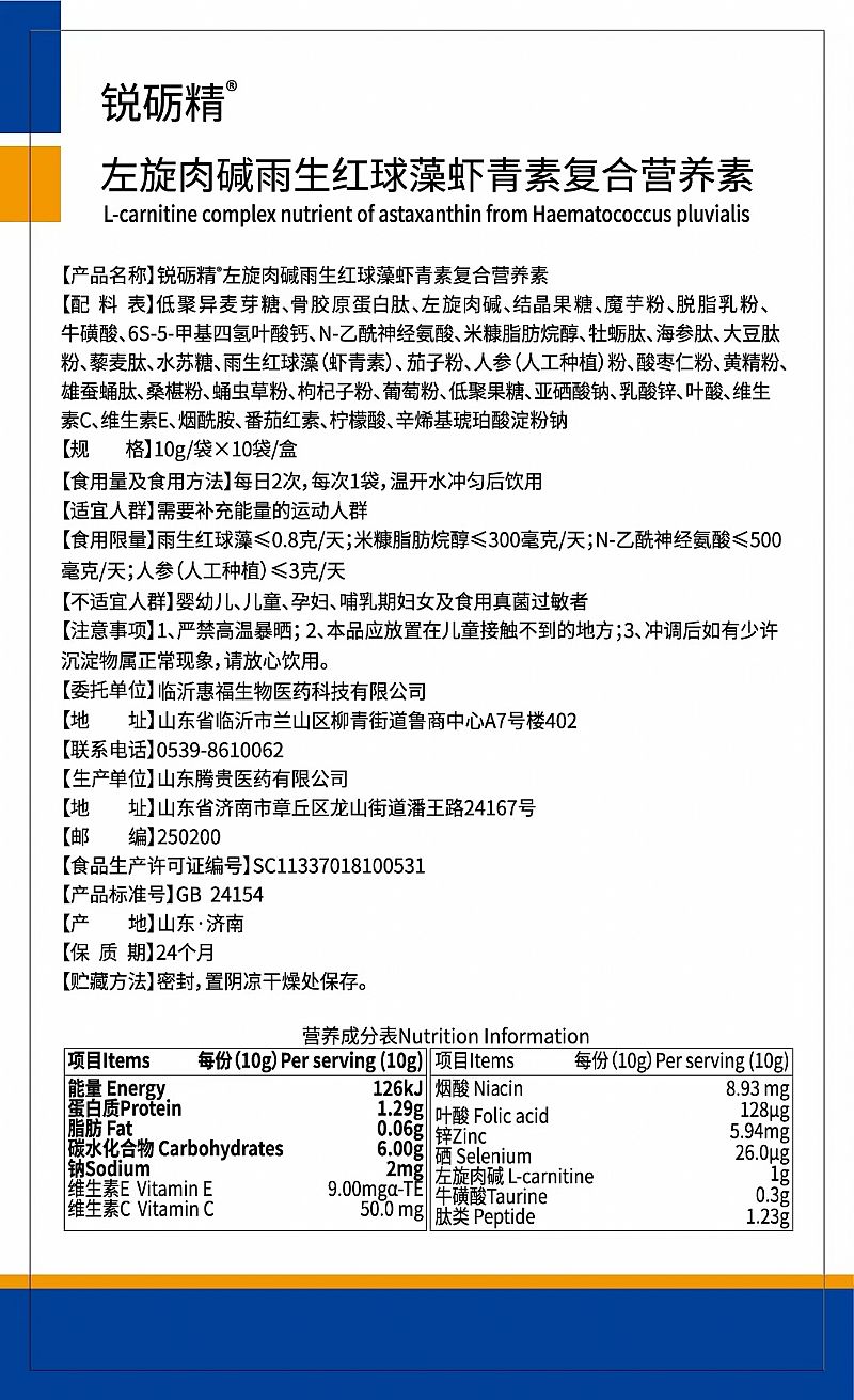 | 產(chǎn)品名稱 | 銳礪精®左旋肉堿雨生紅球藻蝦青素復(fù)合營(yíng)養(yǎng)素1 |