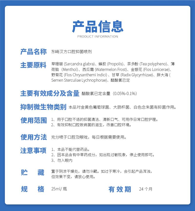 產(chǎn)品名稱: 口潰清™;口腔抑菌噴劑