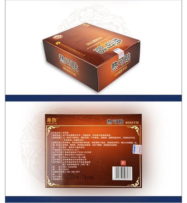 | 補(bǔ)充說明 | [禁忌癥]皮膚病、糖尿病、急性期炎癥患者、孕婦下腹部、皮膚潰爛處禁用。 [注意事項(xiàng)、警示及提示性說明] 1、僅限一次性使用,用后銷毀。 2、包裝如有破損,嚴(yán)禁使用。 3、使用時(shí)嚴(yán)格按照使用說明進(jìn)行。 4、敷貼后無熱感,如有不適,應(yīng)停止敷貼 [儲(chǔ)存條件、方法]本產(chǎn)品應(yīng)貯存在相對濕度不超過80%無腐蝕性氣體、陰涼、干燥、通風(fēng)良好、清潔的環(huán)境內(nèi)。 [注冊證編號(hào)]魯械注準(zhǔn)20142090014 [產(chǎn)品技術(shù)要求編號(hào)]魯械注準(zhǔn)20142090014 [生產(chǎn)許可證號(hào)]魯食藥監(jiān)械生產(chǎn)許20110078號(hào) |