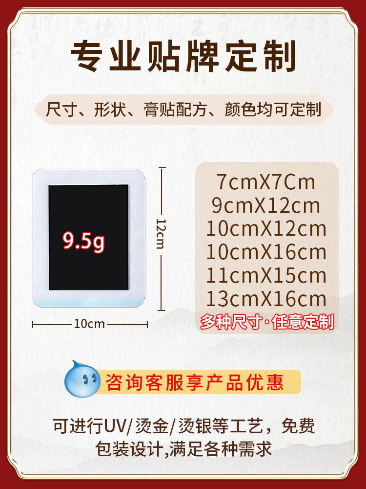 | 英文名稱 | 黑膏藥OEM 傳統(tǒng)手工老膏藥代加工廠家 漢磁灸熱貼 |
