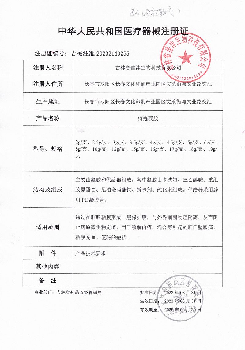 | 主要成分 | 【主要結構組成】痔瘡凝膠主要由凝膠和供給器組成,其中凝膠由卡波姆、三乙醇胺、重組膠原蛋白、尼泊金丙酯鈉、矯味劑、純化水組成。供給器采用藥用PE凝膠管。 |
