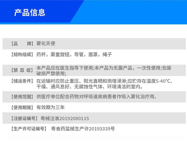 | 主要成分 | 1、本產(chǎn)品為無菌產(chǎn)品,一次性使用;包裝破損,嚴禁使用。 2、與人體接觸的材料 ★霧化杯、口含器、鼻插:材質(zhì)主要為聚丙烯(PP),不含DEHP!锕枘z嬰兒面罩、兒童面罩、成人面罩,材質(zhì)成份為硅膠,不含DEHP!颬VC兒童面罩、成人面罩:材質(zhì)主要分別為聚氯乙烯(PVC)。★導(dǎo)管:材質(zhì)主要為聚氯乙烯(PVC),★松緊帶:材質(zhì)主要為滌綸。 [禁忌癥、注意事項、警示及提示說明]★本產(chǎn)品應(yīng)在醫(yī)生指導(dǎo)下使用。 ★本產(chǎn)品為無菌產(chǎn)品,一次性使用;包裝破損,嚴禁使用。 |