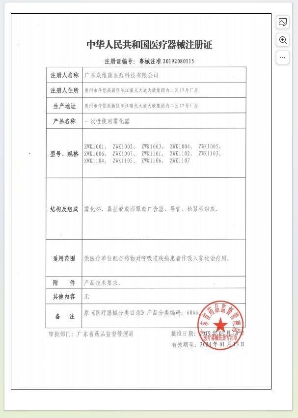 生產(chǎn)企業(yè): 廣東眾維康醫(yī)療科技有限公司